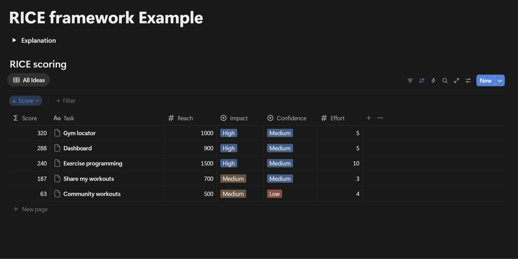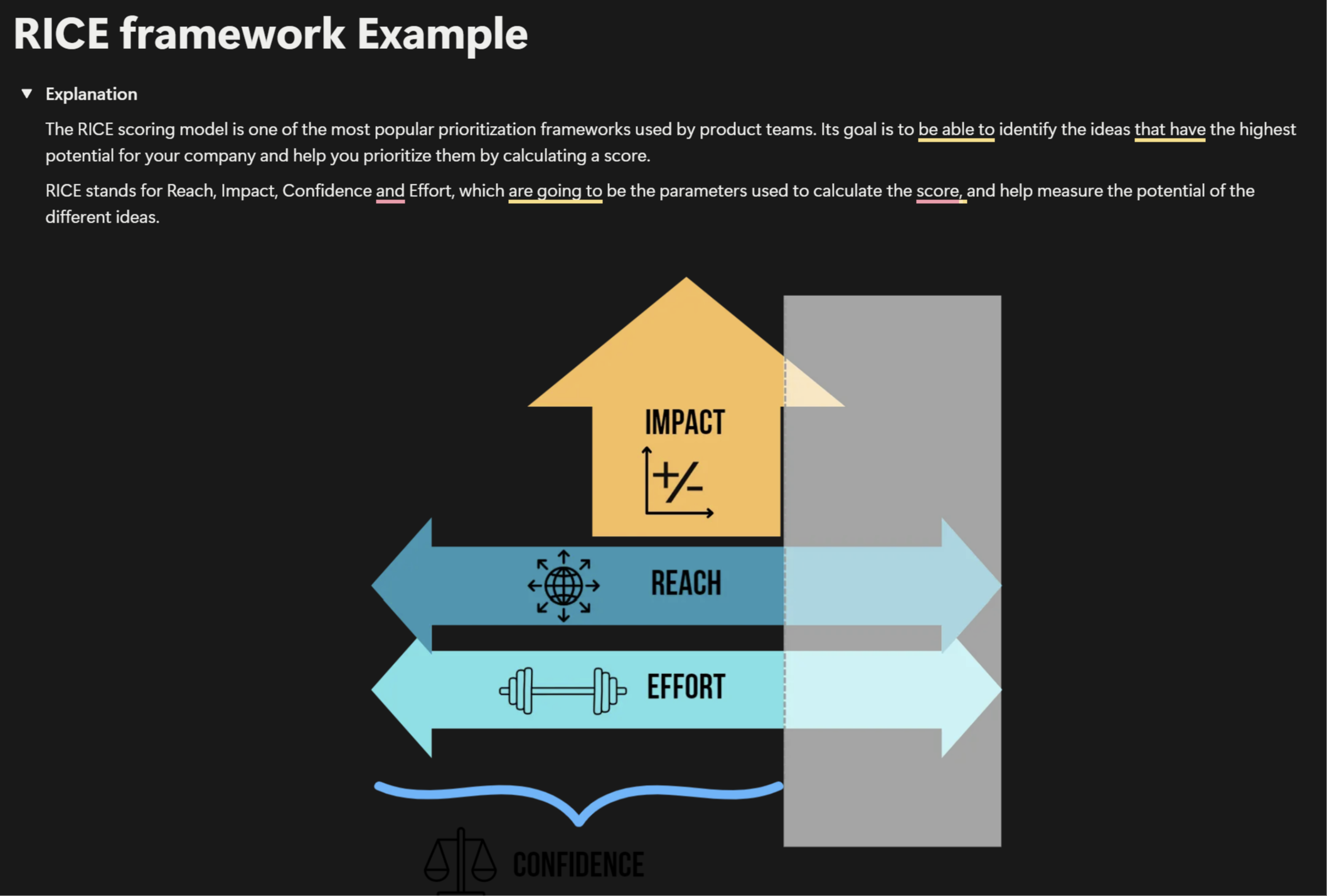 The Notion RICE Scoring Template will help you and your team identify the biggest opportunities to work on, and prevent you from wasting time.