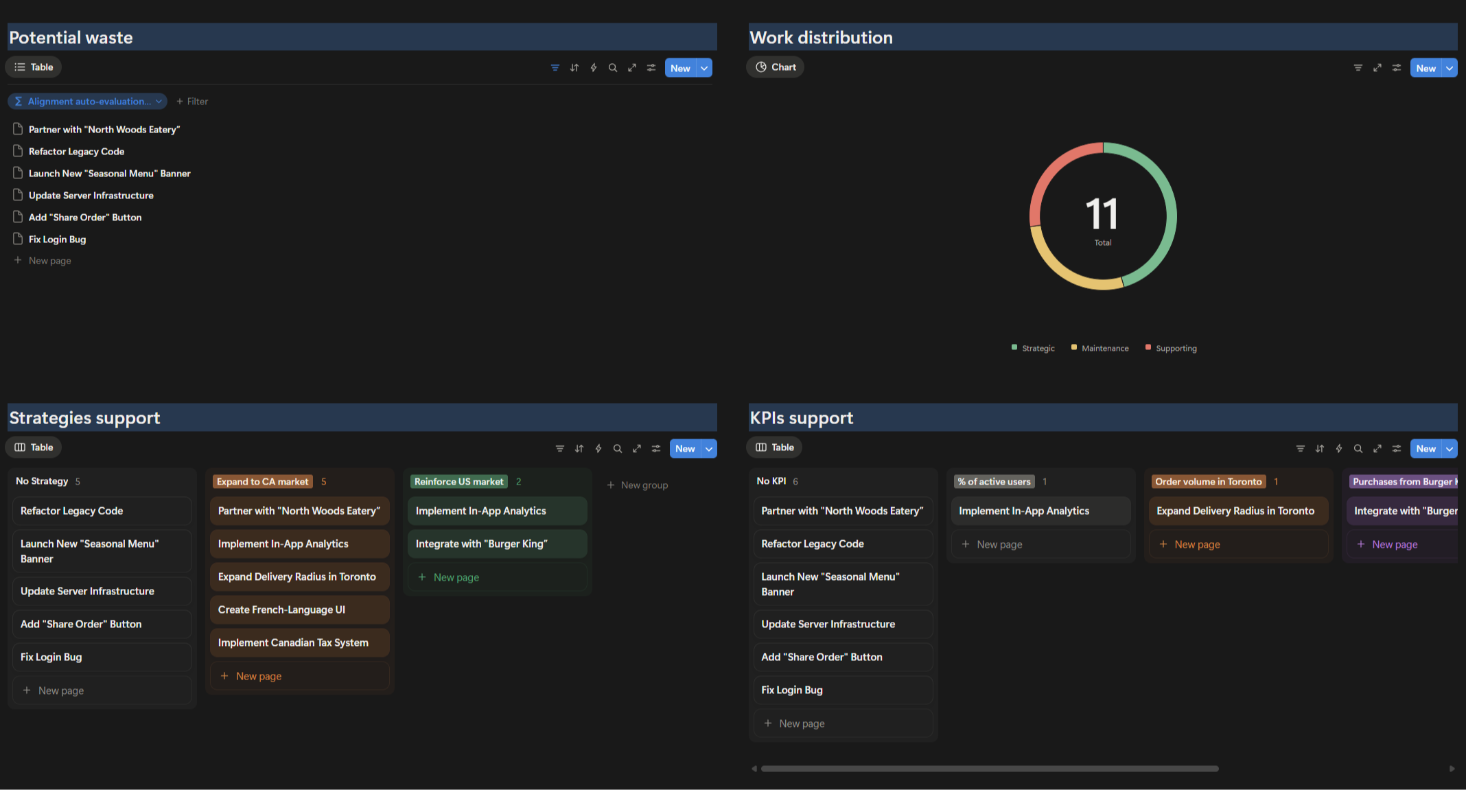 • See how much work is supporting your strategies and KPIs
